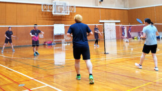 何ともまぁありがたいことに、この日も参加してくれる人がめちゃめちゃ多かったため、バドミントンコートとコートの間にも簡易的にネットを張り、そのエリアでも基礎打ちなどをしてもらいました。