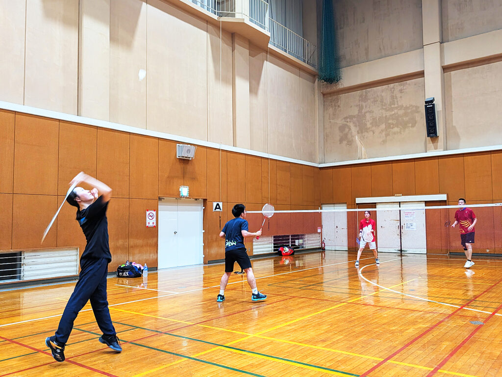多彩な技を繰り出しながらバドミントンするべし。
